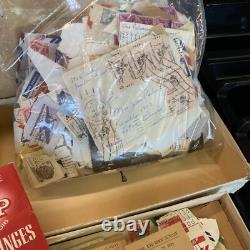 Plus de 2000 timbres en vrac, très anciens jusqu'aux années 1960, certains séparés par pays, d'autres en vrac ou sur des enveloppes. Également un pack vintage de charnières à timbres pour que vous puissiez compléter le livre. L'album est parfait pour les collectionneurs qui cherchent une collection unique de timbres à compléter des États-Unis et du monde entier. Les timbres ne sont pas gradés.